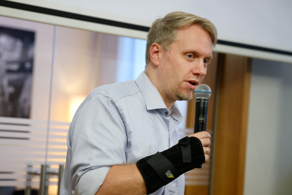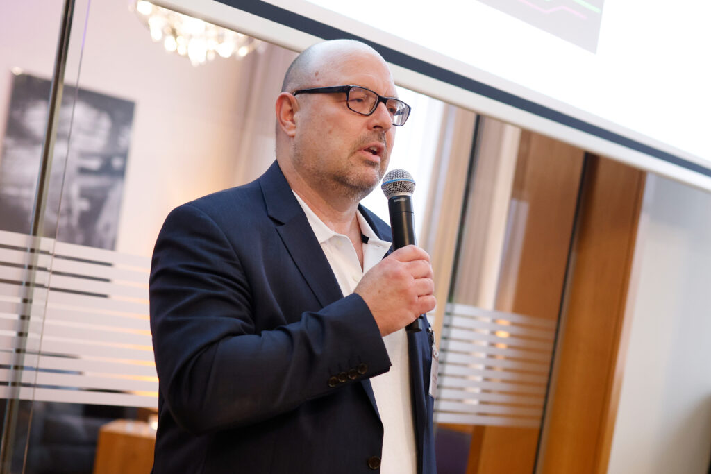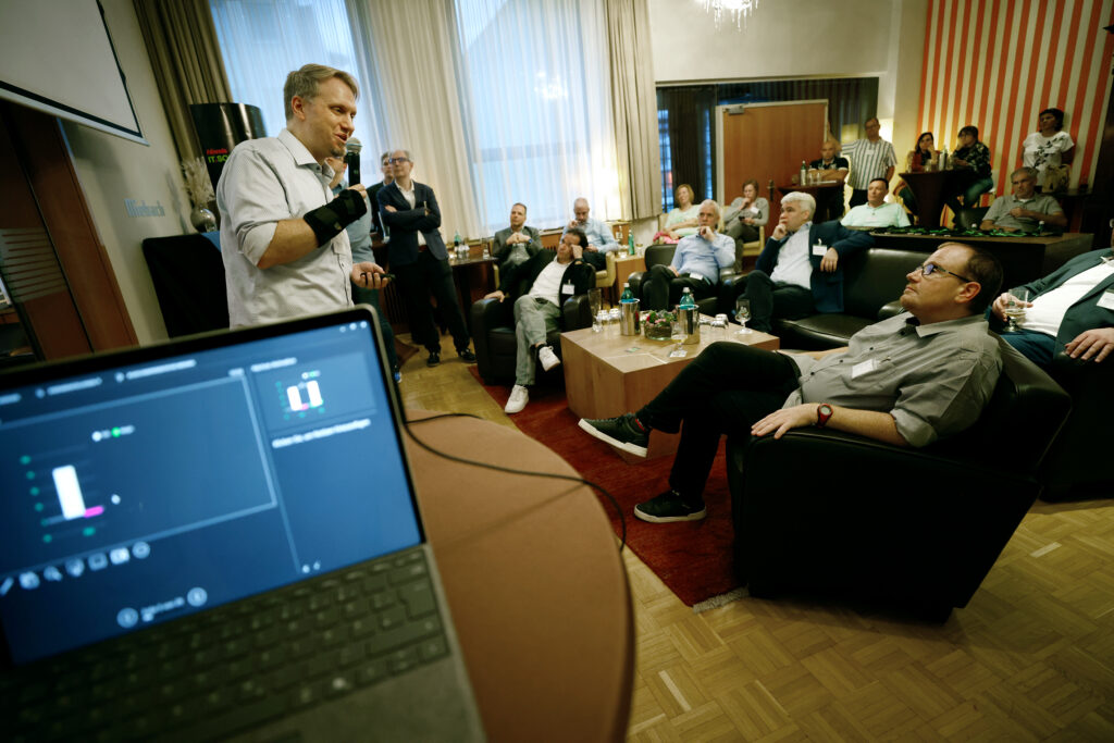 Im Mittelpunkt des Abends stand der Impulsvortrag von Tobias Klein, Leiter Software-Entwicklung Automotive Security bei der ETAS GmbH (Bosch-Gruppe). Unter dem Titel „Stundensätze sind von gestern: Warum wir unsere Organisation radikal umbauten und jetzt skalieren“ schilderte er den Wandel seines Unternehmens von der projektgetriebenen Entwicklung hin zu einem skalierbaren, kundenorientierten Geschäftsmodell. Besonders beeindruckend waren seine Einblicke in den Aufbau wiederverwendbarer Plattformen, die konsequente Ausrichtung auf den Kundennutzen sowie die Arbeit mit eigenverantwortlichen Teams.